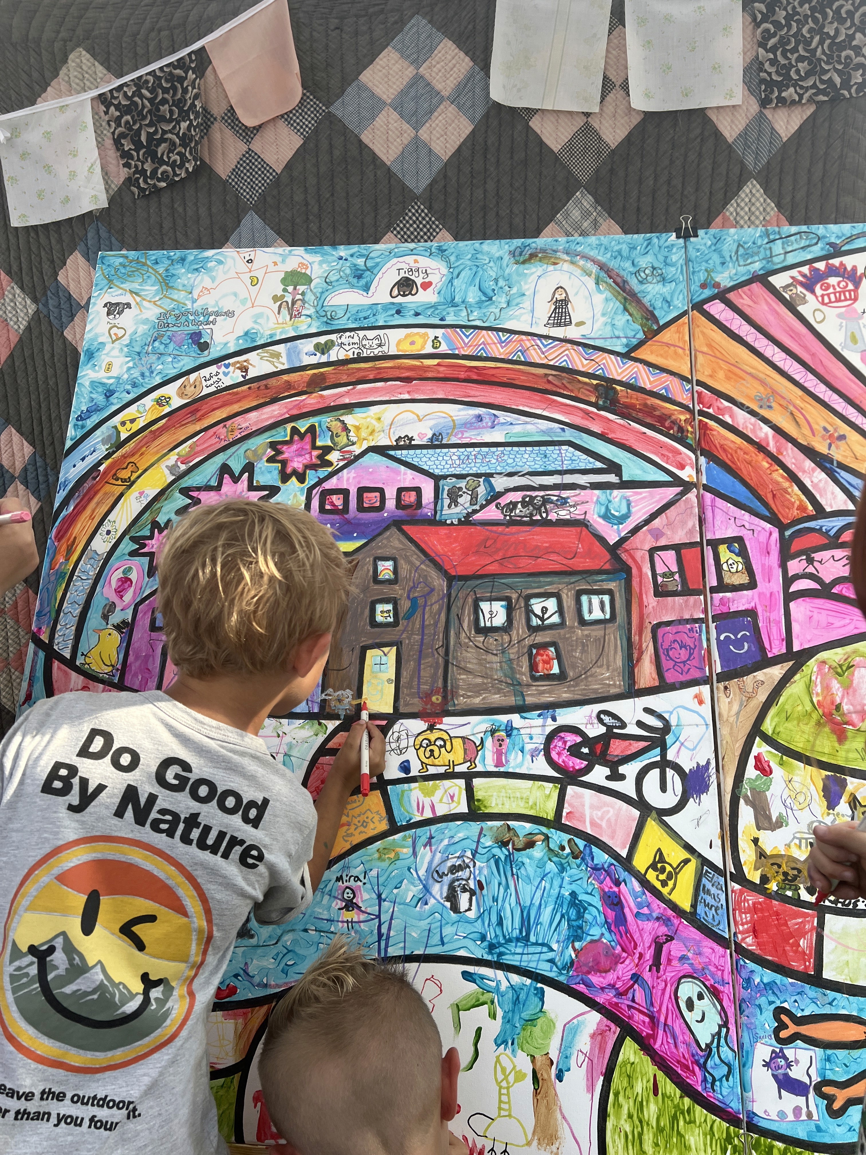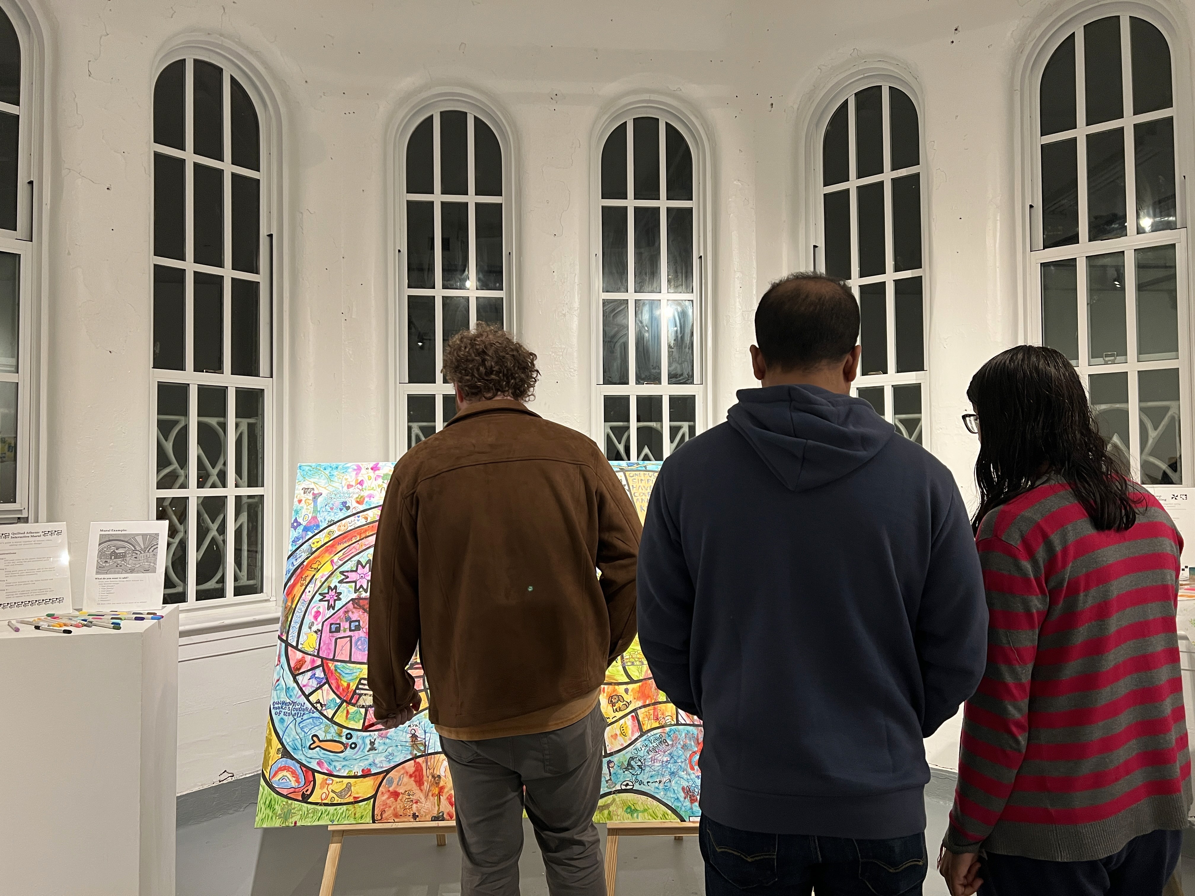 Participating artists are able to add to a quilt-inspired composite of Athens, Ohio. Through color and original drawings, participating artists add their favorite part of their community, whether it's a hobby, a pet, a friend or a character.